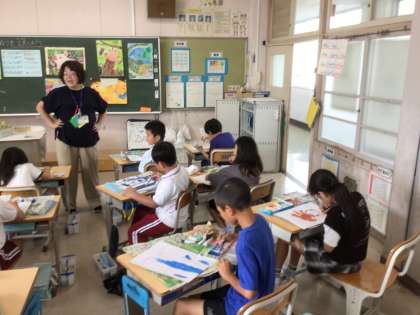 9月19日 図工 4年生 公開日 2025/09/19 更新日 2025/09/19 校長室から 主人公の色塗りを工夫しよう 読書感想画に取り組んでいます。 今日は実際に自分が描きたい中心(人物?)の色塗りをしました。 筆を点々点々としたり、流して毛並みを表現したりいろいろな工夫が見られました。