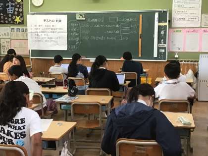 テストも終わり、提出した子は学習用タブレットを使って復習?していました。