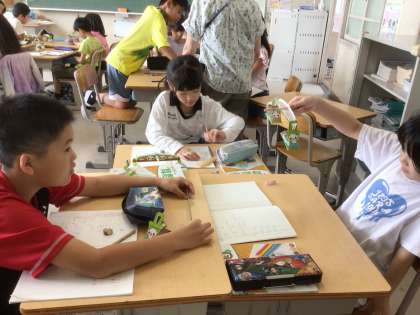 9月25日 算数 3年生 公開日 2025/09/25 更新日 2025/09/25 校長室から 重さしらべ 11gになるものは何だろう 昨日使ったてんびんと1円玉を11個を使って調べました。 鉛筆や消しゴム、いろいろなものを片方に載せて調べました。