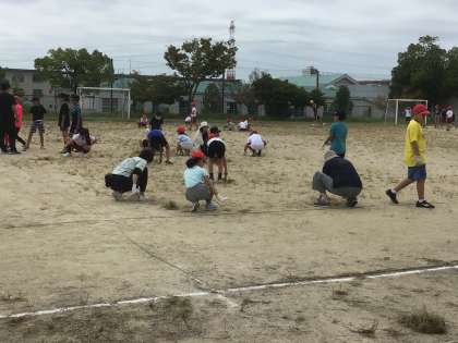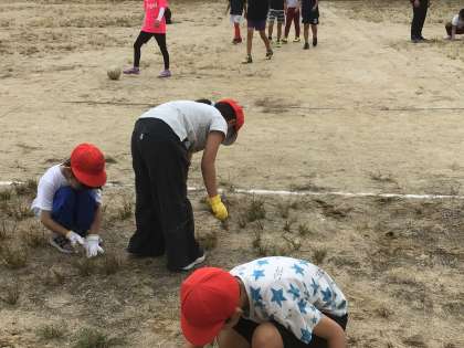 ひまわりタイムに放送でボランティア募集を呼びかけたところ、たくさんの子が運動場に出てきてくれました。