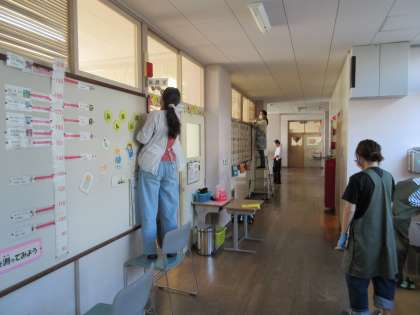 今日はボランティアの方々が、保健室と配膳室のホコリの溜まった格子窓を清掃してくださいました。驚くほどきれいになりました。大感謝です。ありがとうございました。