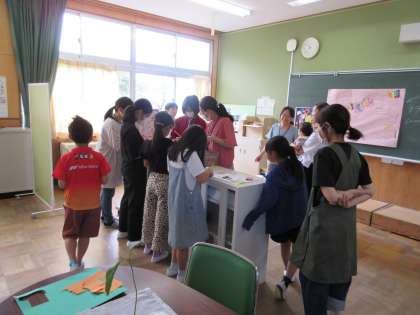 折り紙教室のサポートもしていただき、子どもたちの作品を素敵に音楽室前の踊り場に掲示してくださいました。いつもありがとうございます。