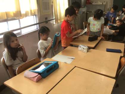 10月2日 総合的な学習 3年生 公開日 2025/10/02 更新日 2025/10/02 校長室から 2年生に伝えよう 今まで自分たちが調べてきたことを劇やクイズで2年生に発表します。 台本を見ながら、分担したり、練習をしたりがんばっています。
