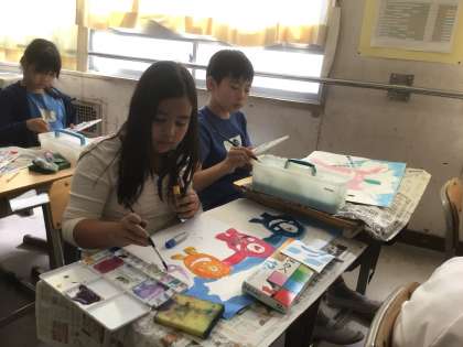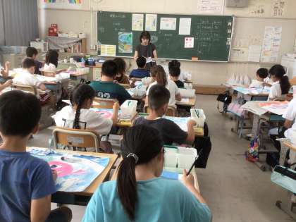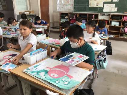 読書感想画 絵の具を使って色塗りをしました。 楽しそうに色を塗る子が多く、微笑ましく思いました。
