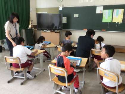 10月20日 国語 国際1年生 公開日 2025/10/20 更新日 2025/10/20 校長室から なにに見えるかな? 学習用タブレットで、どんぐりや葉っぱを並べます。 何に見えたかな?文に書きます。
