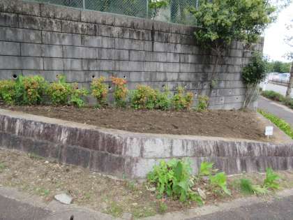 今日ボランティアさんが、通学路の歩道橋下にあるリフレッシュガーデンを整備してくださいました。雑草が生い茂り、土も硬くて重労働でした。本当にありがとうございました。