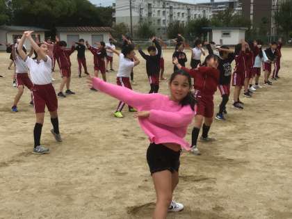 運動場では、6年生がソーランの練習をしました。