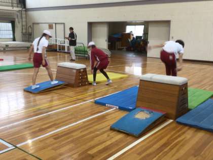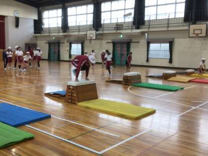 10月24日 体育 5年生 公開日 2025/10/24 更新日 2025/10/24 校長室から 体育館で運動会の練習かな?とのぞいてみると 跳び箱の抱え込み跳びの練習中でした。 「今日が跳び箱、最後だからね」 と、先生の声。 みんな、しっかり跳んでいました。