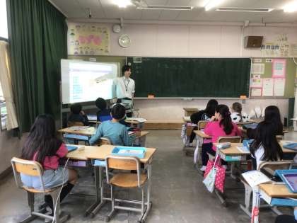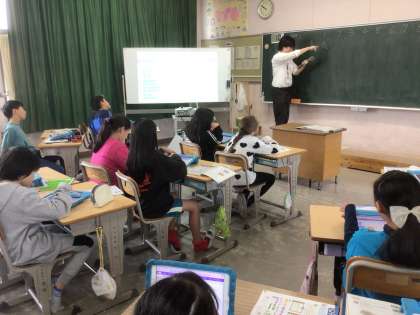 10月24日 ICT支援員さんと 4年生 公開日 2025/10/24 更新日 2025/10/24 校長室から プログラミングの学習です。 今日はICT支援員さんに教えてもらい、スクラッチの学習をしました。