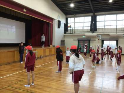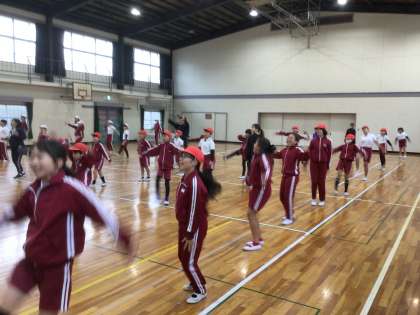 11月5日 ひがしホミーゴの練習 2・5年生 公開日 2025/11/05 更新日 2025/11/05 校長室から 今日は2年生と5年生がひがしホミーゴのレッスンを受けました。 みんなこのダンスが大好きで、笑顔で元気よく踊ることができました。 運動会が楽しみです。