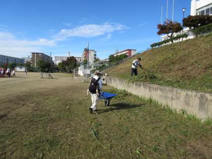 今日は7名のボランティアさんが除草作業としめ縄作りに来てくださいました。運動場斜面の背の高さほどある草は校内整備員が刈るのですが、集めて運ぶ作業をボランティアさんにお願いしました。何度も運び大変でした。本当にありがとうございました。
