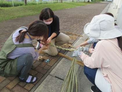 5年生バケツ稲の藁でしめ縄も作ってくださっています。5年生の教室だけでなく、全部の昇降口にも飾るほどできそうです。ありがとうございます。