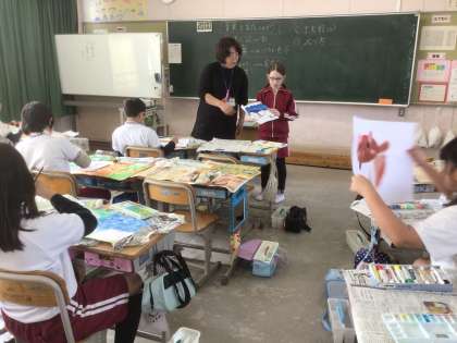 背景を完成させよう いろいろな技法を使って背景完成に取り組んでいました。