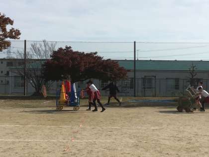 明日の運動会のために、6年生が残って準備をしました。