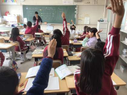 11月11日 算数 3年生 公開日 2025/11/11 更新日 2025/11/11 校長室から 計算の順序を考えよう 4✖️2✖️5 4✖️(2✖️5) この2つの式の答えが同じになることを確認しました。