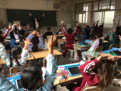 今日は学習用タブレットで自分の作品を撮って、鑑賞会が始まります。