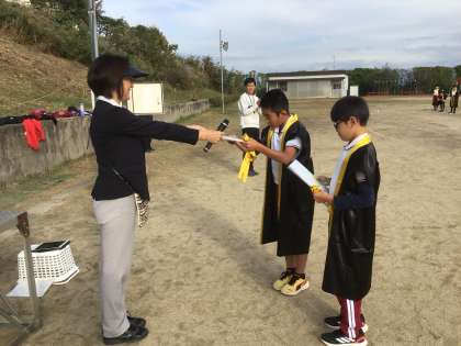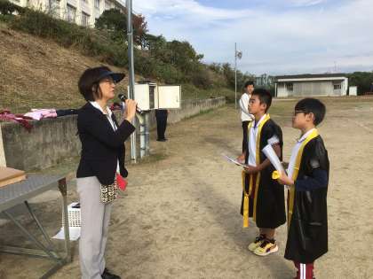 11月12日 ソーラン節をもう一度 その3 公開日 2025/11/12 更新日 2025/11/12 校長室から 最後まで踊り切った6年生。 本当にかっこよかったです。 運動会で裏方としてもよく働き、運動会の大成功に貢献してくれました。 運動場でたかのす賞を渡しました。 6年生、ありがとう。おめでとう。