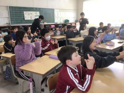 11月13日 手話教室 3年生 公開日 2025/11/13 更新日 2025/11/13 校長室から 3年生は総合的な学習で、「福祉」の学習をします。 今日は、講師の方をお招きして、手話を教えてもらいました。