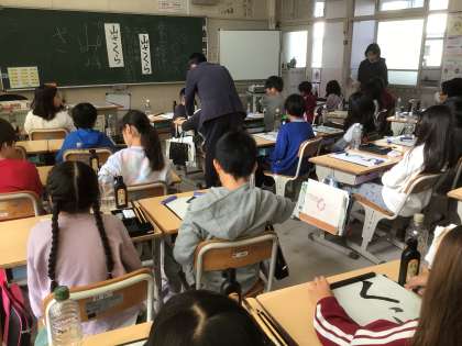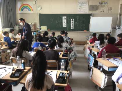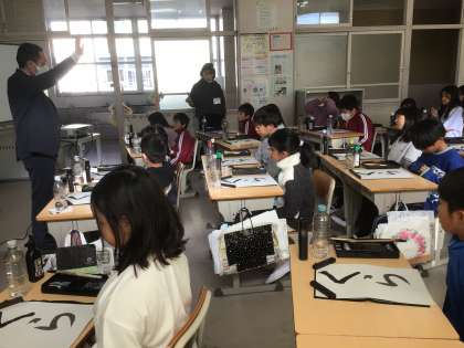 書き初めの練習 3年生から書き初めは毛筆です。 「山ざくら」と書きます。