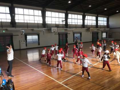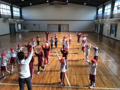 体育館 運動会のダンスをみんなで踊りました。