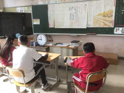 11月27日 国語 国際4年生 公開日 2025/11/27 更新日 2025/11/27 校長室から 先生といっしょにごんぎつねを音読しました。 難しい言葉がたくさん出てきます。 先生が用意してくれた言葉の説明カードを見ながら、理解を深めます。