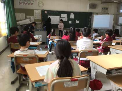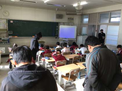 今日の3時間目は、学校中の先生が授業を見に2年1組へ集まりました。