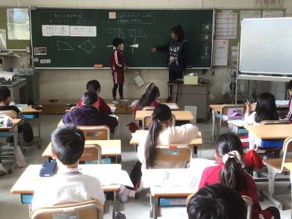 三角形を切って、三角形と四角形を作ろう どこで切ればよいのかな?