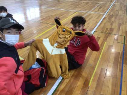 荷物点検をしました。 先生が言うものを順に確認します。 「パジャマ」 で出てきたのが・・。