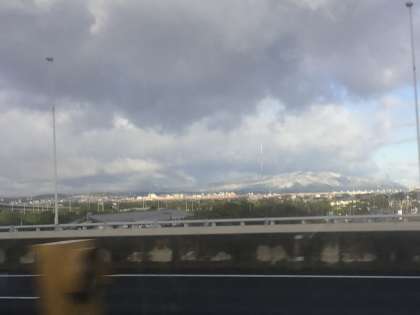 長島パーキングでトイレ休憩をしました。 養老山脈が雪をかぶっていました。