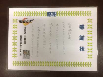 6年生のみなさんから感謝状をいただきました。
