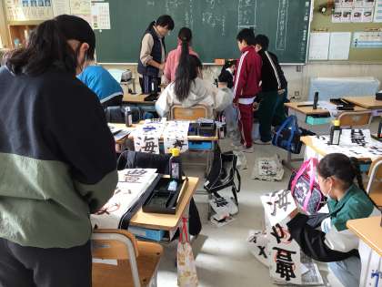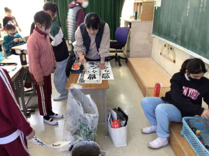 書初め練習 5年生は「豊かな海」と書きます。 難しそうです。
