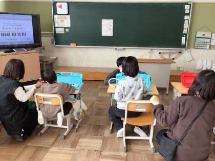 低学年の子が集まって鍵盤ハーモニカの練習をしました。