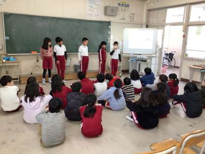 またまた、3年生の教室へ行くと発表の練習中でした。