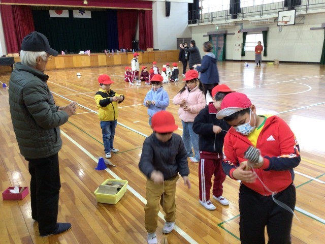 今日は地域の方に来ていただき、一緒に昔遊びを楽しみました。