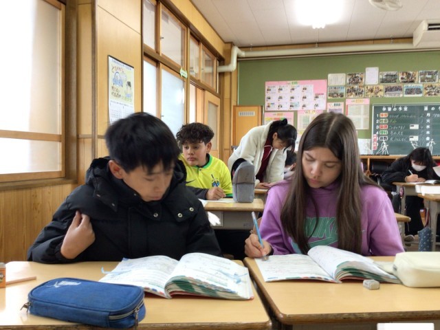 先生の周りに机を持ってきて、楽しそうに学習していました。