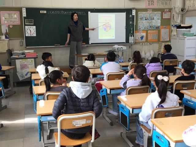 担任の先生が1年生にわかりやすく話しました。