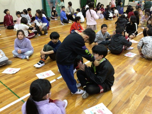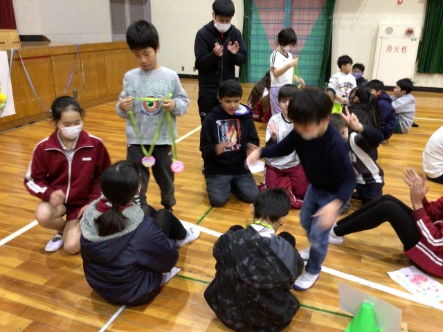1、2年生から6年生にプレゼントのメダルが渡されました。