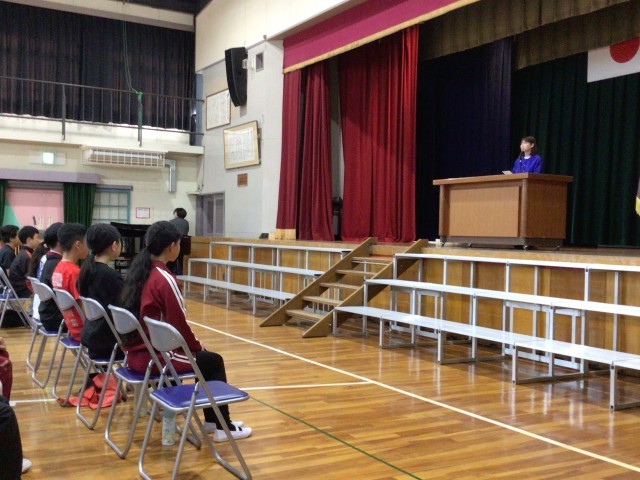 校長式辞では、4年生のときの担任の先生が話をしてくださいました。