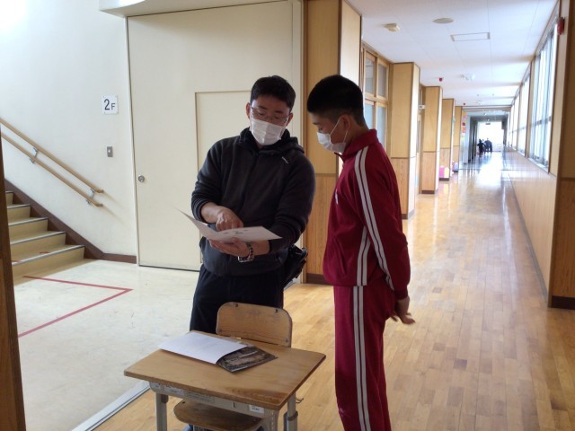 がんばったことをたくさんほめてもらいながら先生から受け取りました。