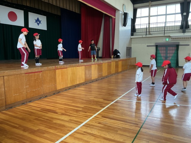 4月14日 体育 2年生 公開日 2026/04/14 更新日 2026/04/14 校長室から リーダーの指示と逆の動きをしました。リーダー「前」と言って前に一歩ジャンプ。他の子は「後ろ」と言って後ろにジャンプ。