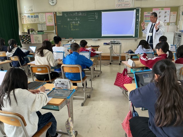 子どもたちは、学習用タブレットを使って雲の種類をしらべました。