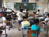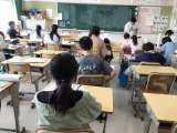 3年生の様子です。 担任の先生に夏休みの作品や宿題を提出しました。