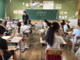 「もう勉強?」 と思ったら、1組は先月参加したこころの劇場のアンケートを書いてい...