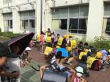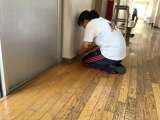 子どもたちがいないので、廊下の壁のペンキ塗りをしてもらいました。 養生した後、校...