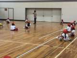 体育館でボールを投げて受ける練習をしました。 片手で投げる子、両手で投げる子様々...