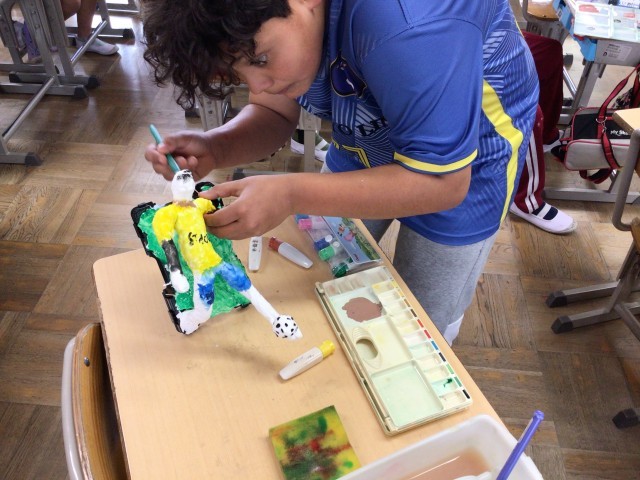 担任の先生が出張でいないので、代わりの先生が入ってくださいました。折紙で「おに」を折っているのですが、途中の形が「へび」に似ているので「へび」「へび」と大盛り上がりでした。