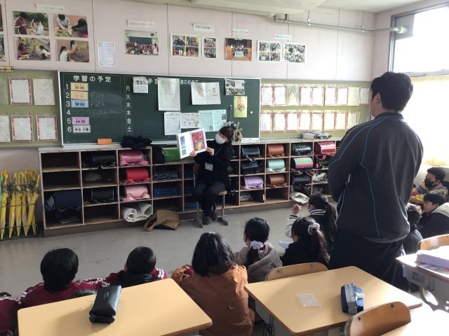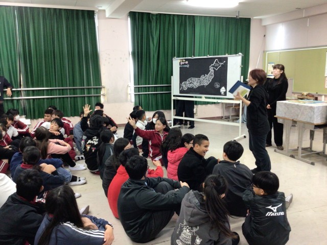 今年度最後の読み語りの日、6年生には特別の読み語りがありました。「卒業を祝う会」です。長谷川義史さんの「だじゃれ日本一周」を読んでもらいながら、日本地図を完成させました。