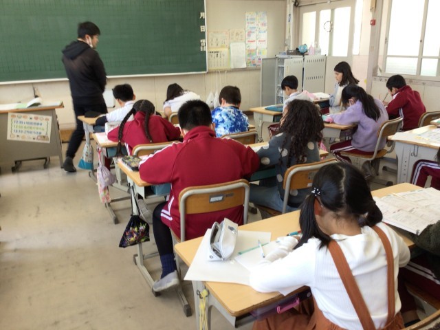 3年生もまとめの時間でした。3年生は、分からない問題があると、さっと手を挙げて先生を呼びます。私(校長)の方を見て、手を挙げる子もいます。目が合うと「来てください」と目が訴えます。そばへ行くと「これが...