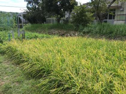 5年生が田植えをした田んぼの様子です。 本日、稲狩りをする予定です。