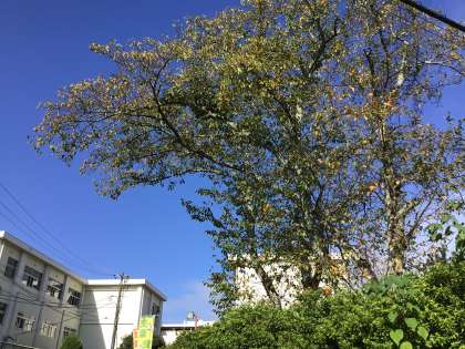 桜の木の葉が黄色くなって葉が落ち始めました。